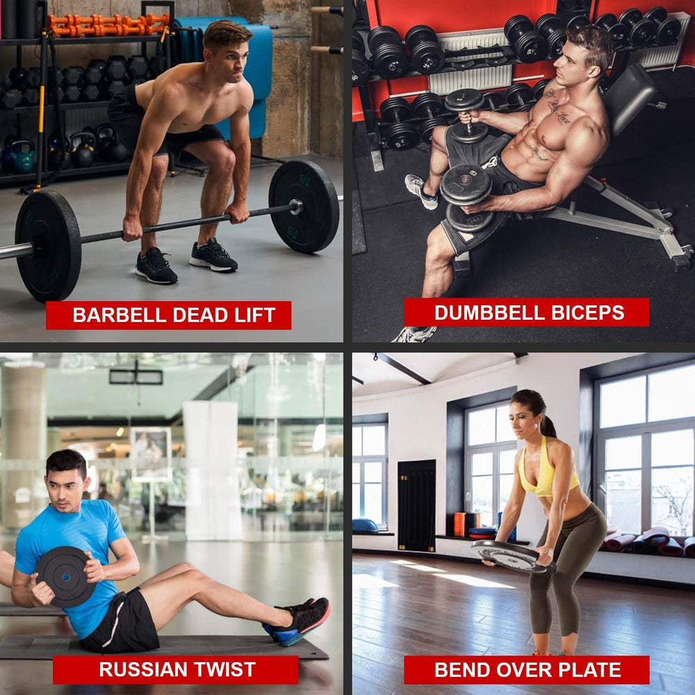 - FUNCTIONAL AND CONVENIENT DESIGN: Ergonomic gym plates are crafted with solid cast iron and perfect craftsmanship. Along with that, each plate features an embossed weight identifier making it quick and easy to recognize