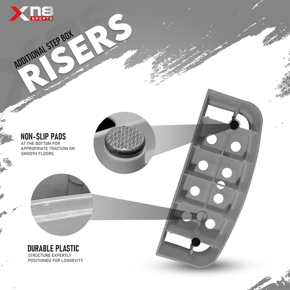 • Each of these additional aerobic stepper steps LIFT THE STEPPER by 5cm so you can practice the routine workouts in more variations