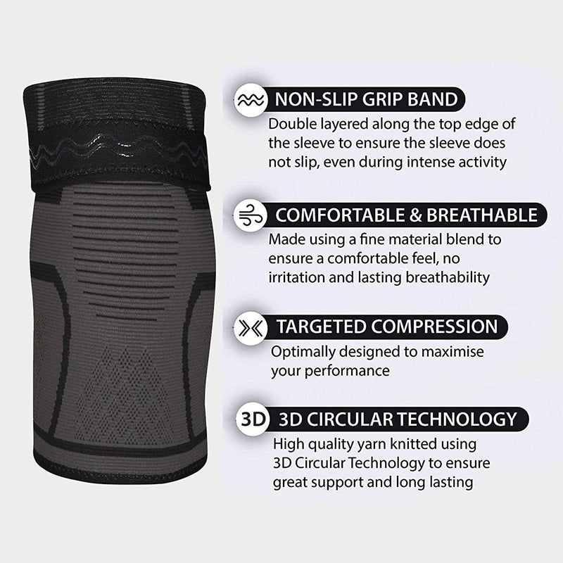 FASTER RECOVERY FROM INJURIES: This compression knee sleeve helps to recover faster from knee wound, and eliminates the risks of re-injury after a surgery. It helps improve blood circulation and prevents stiffness, itchiness and irritation.